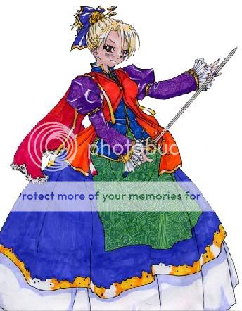 Actually, I've been trying to draw fantasy AU versions of Hagaren people for a while, this is just the first time Hawkeye got involved. Something tells me I didn't really pull it off this time, either. I didn't get the colors quite right (small problem) and I way overused my secret weapon (big problem). That and I feel bad for putting her in such a boring pose more or less to show off the dress. I have such a fetish for drawing huge, crazy gowns covered in adornment like this. Kind of too bad I had to use Hawkeye to make up for it (because she rocks the planet yes).